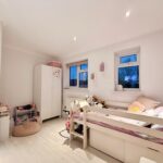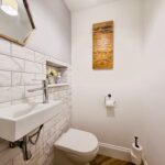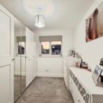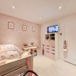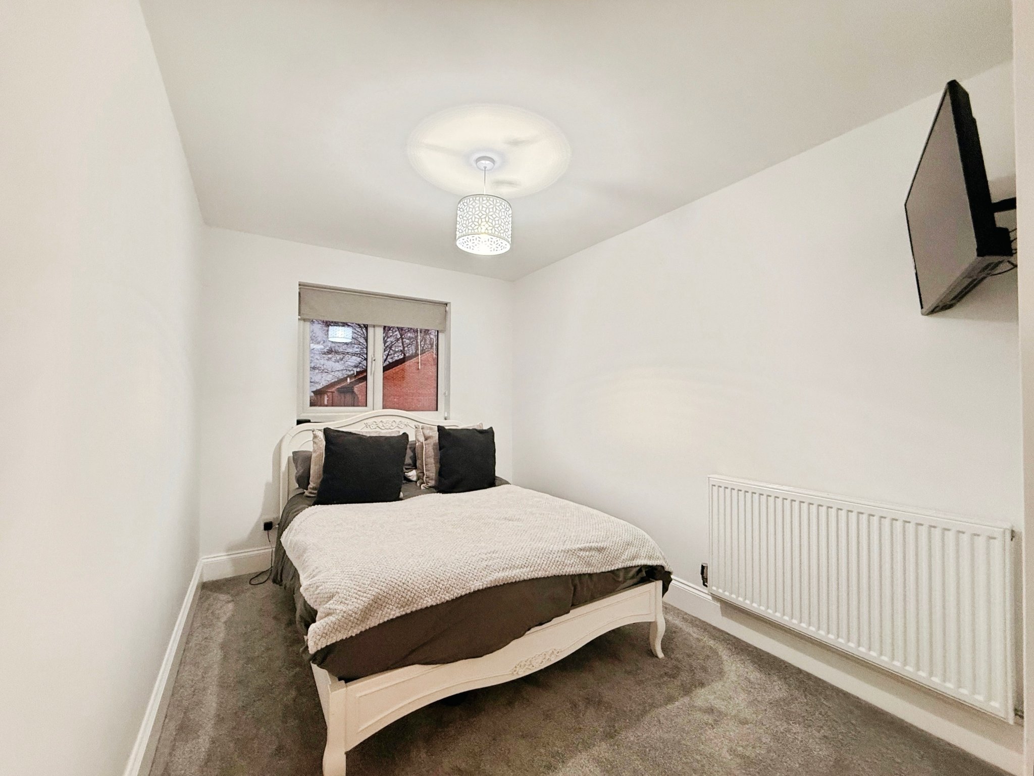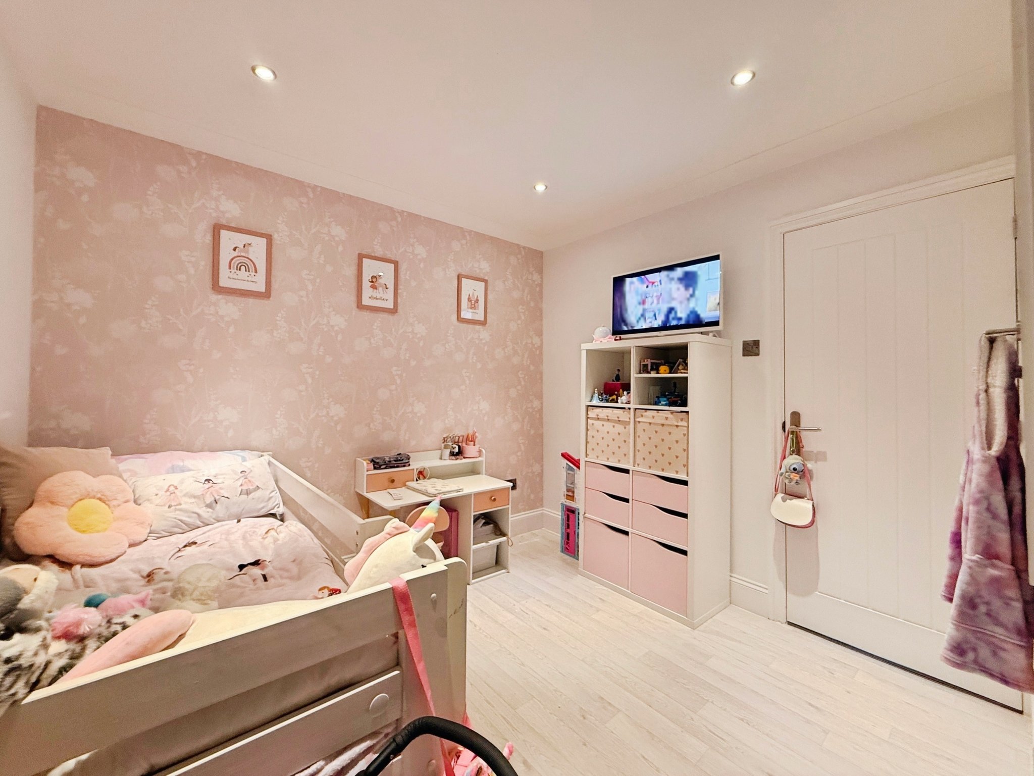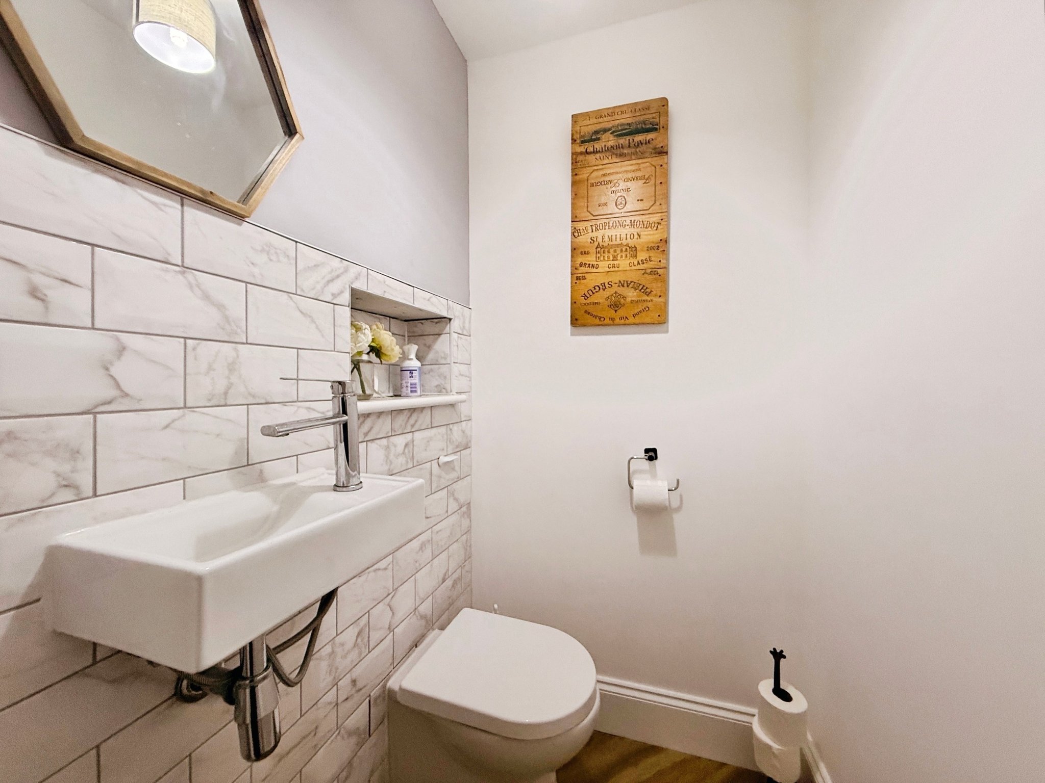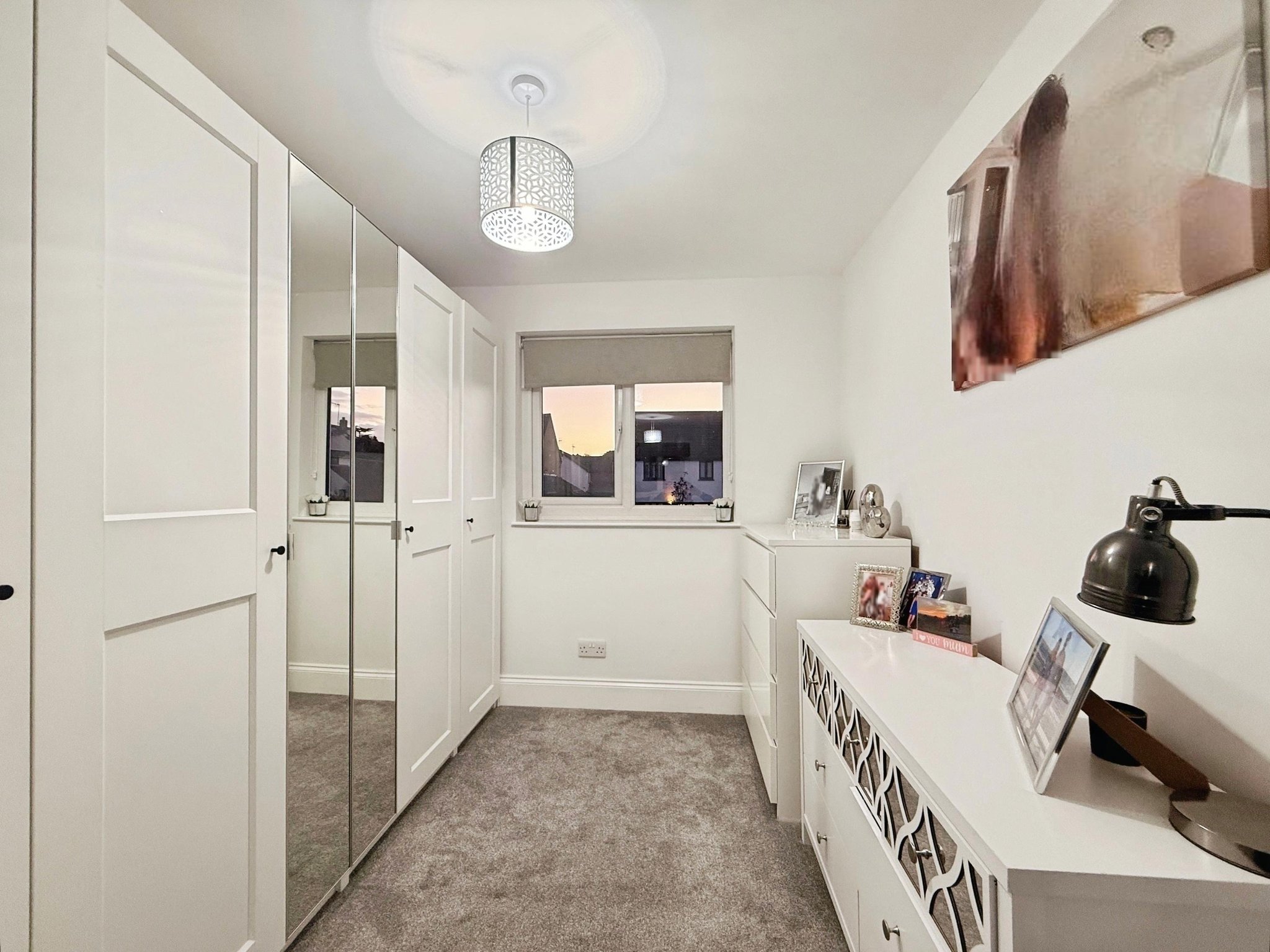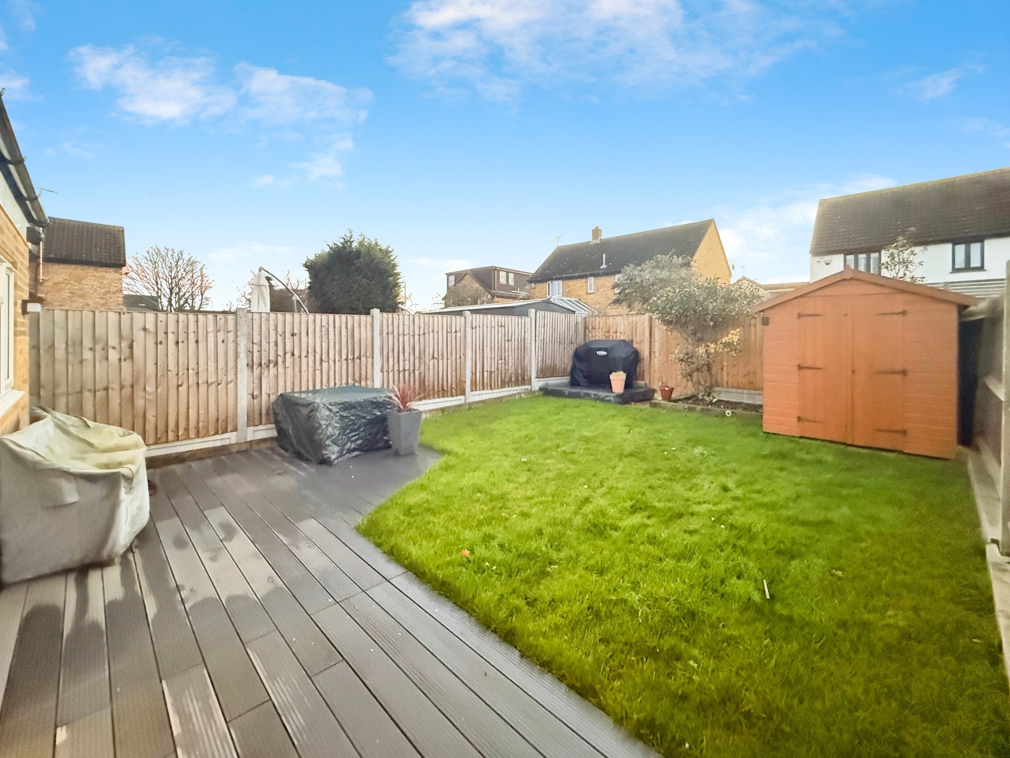 To the rear is the garden, dark grey decking with the rest laid to lawn, BBQ area at the back of the garden and access to the pathway.