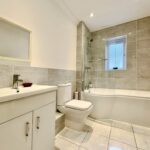 Obscure double glazed window to side, low level wc, vanity wash hand basin, heated towel rail, panelled bath with shower over, shaver point.
