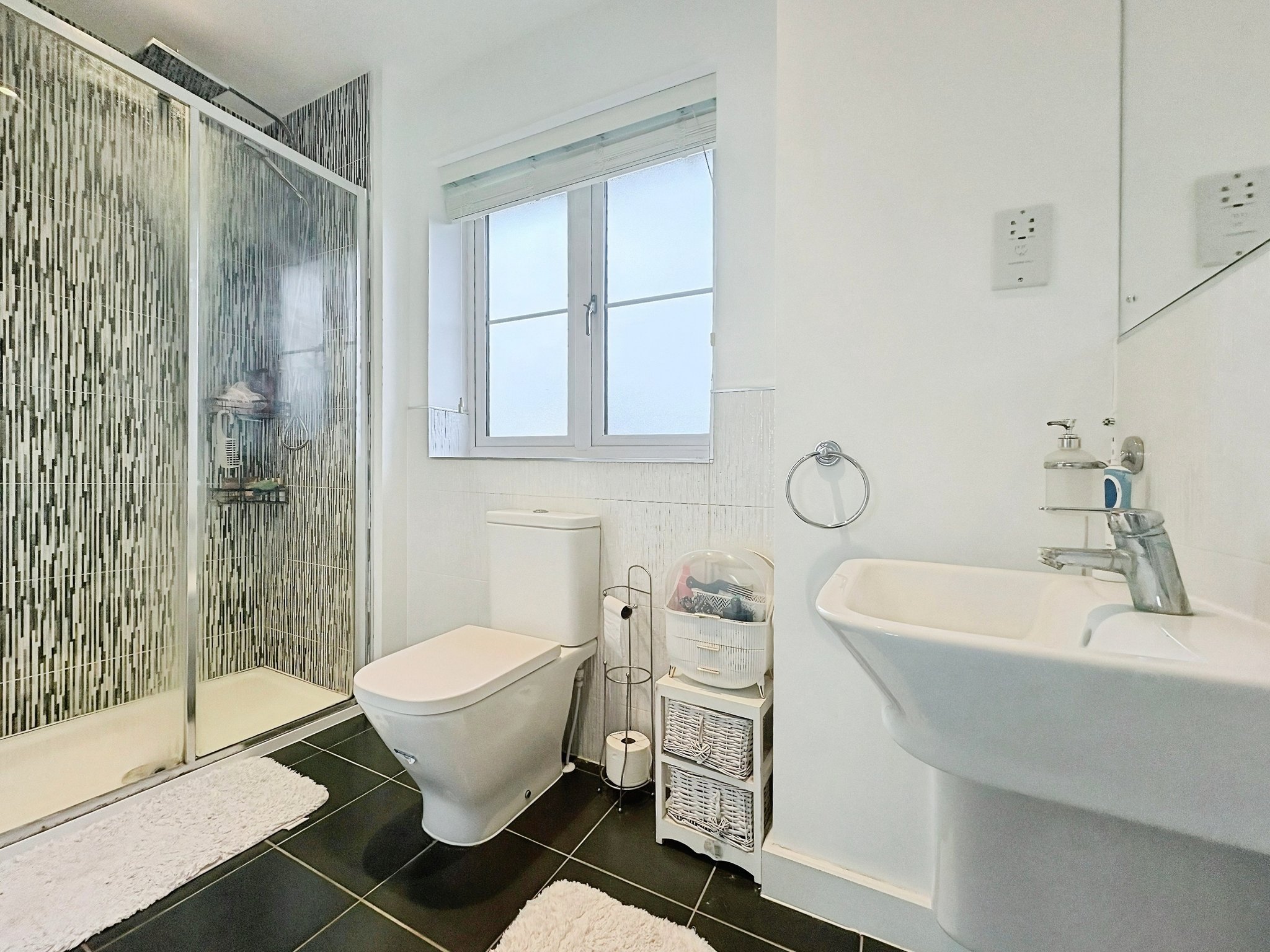 5' 08" x 9' 04" (1.73m x 2.84m) Double glazed obscure window to front, WC, hand wash basin, double shower cubicle, heated towel rail, tiling to walls, tiled flooring.