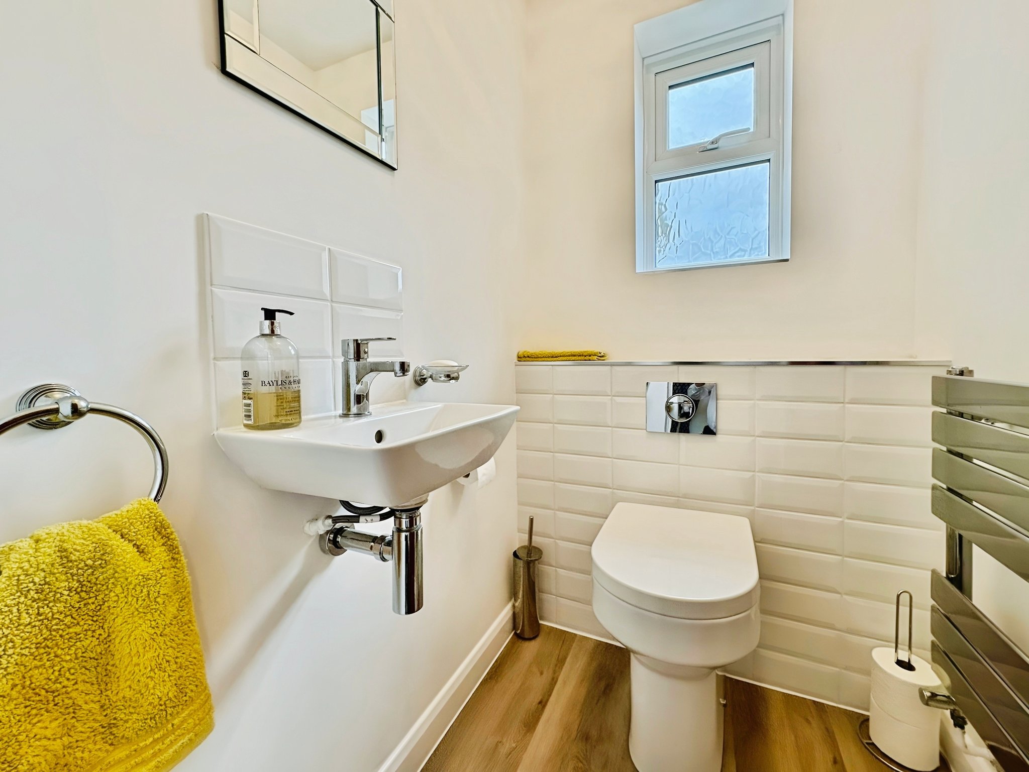 Newly re fitted obscure double glazed window to front, low level W/C, wall mounted hand wash basin, radiator.