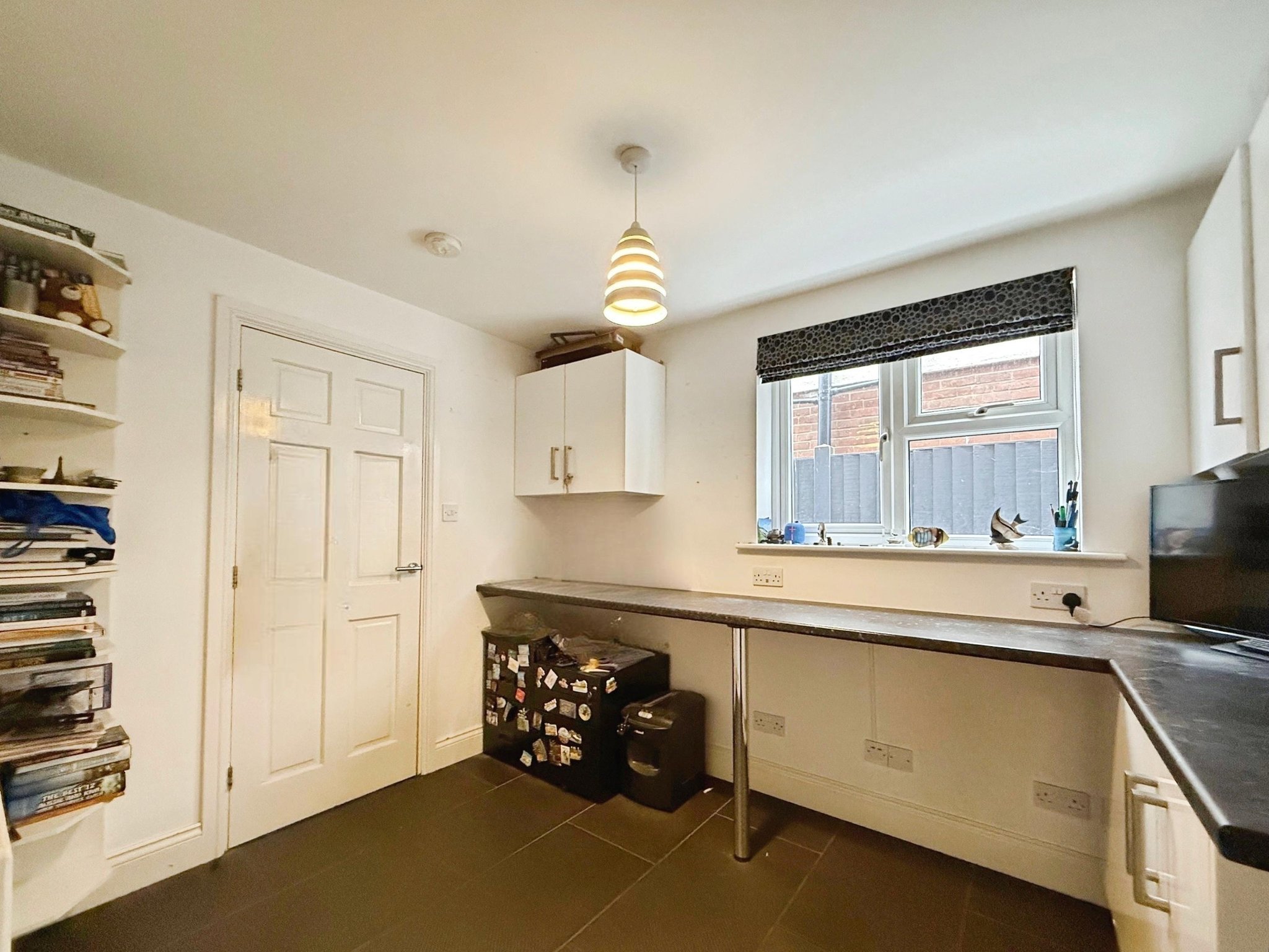 7' 9" x 10' 3" (2.36m x 3.12m) door to garage, window to side, fitted worktop, storage cupboards, tiled flooring.