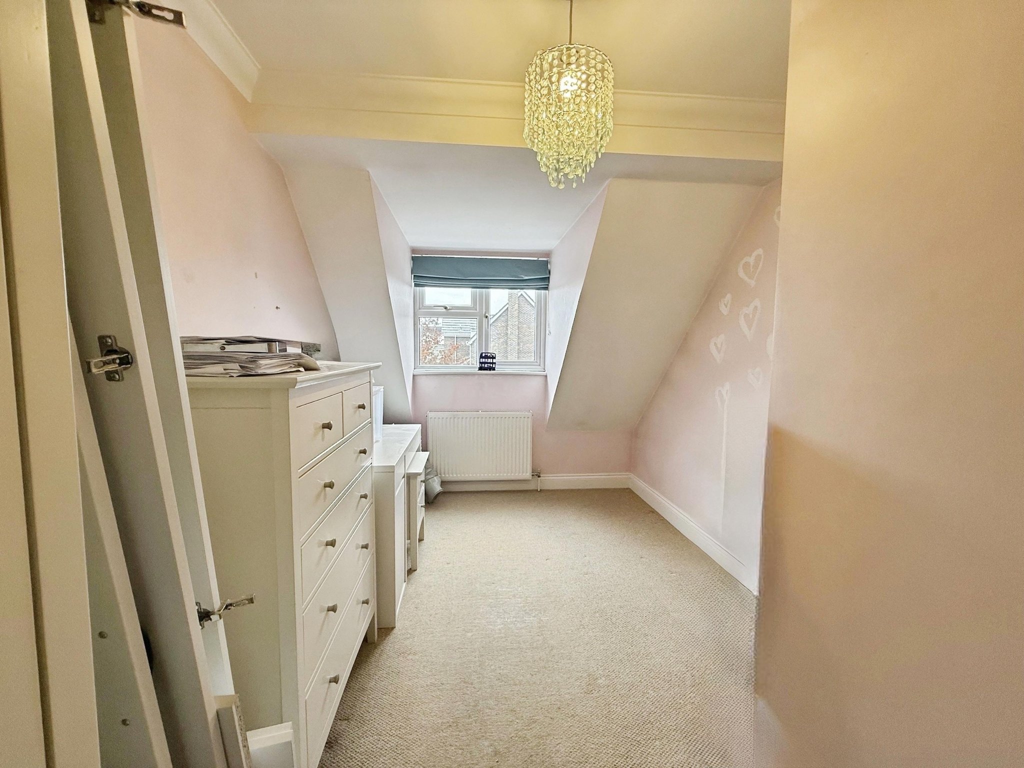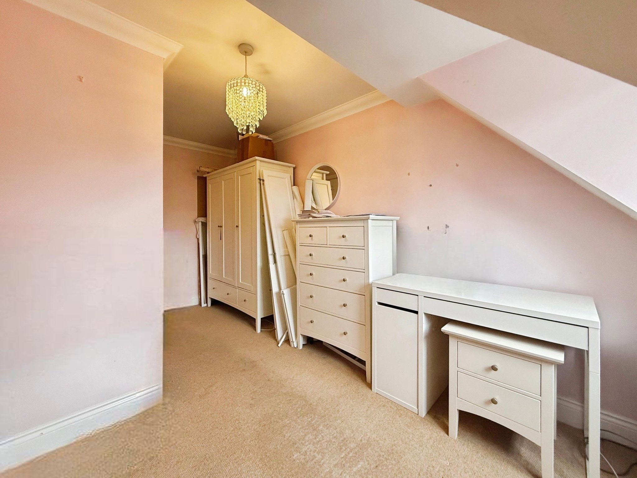 15' 4" x 7' 8" (4.67m x 2.34m) Window to front, radiator, sloped ceiling, finished in pink tones.