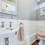 Window to front aspect, white suite comprising low level WC and wash hand basin.