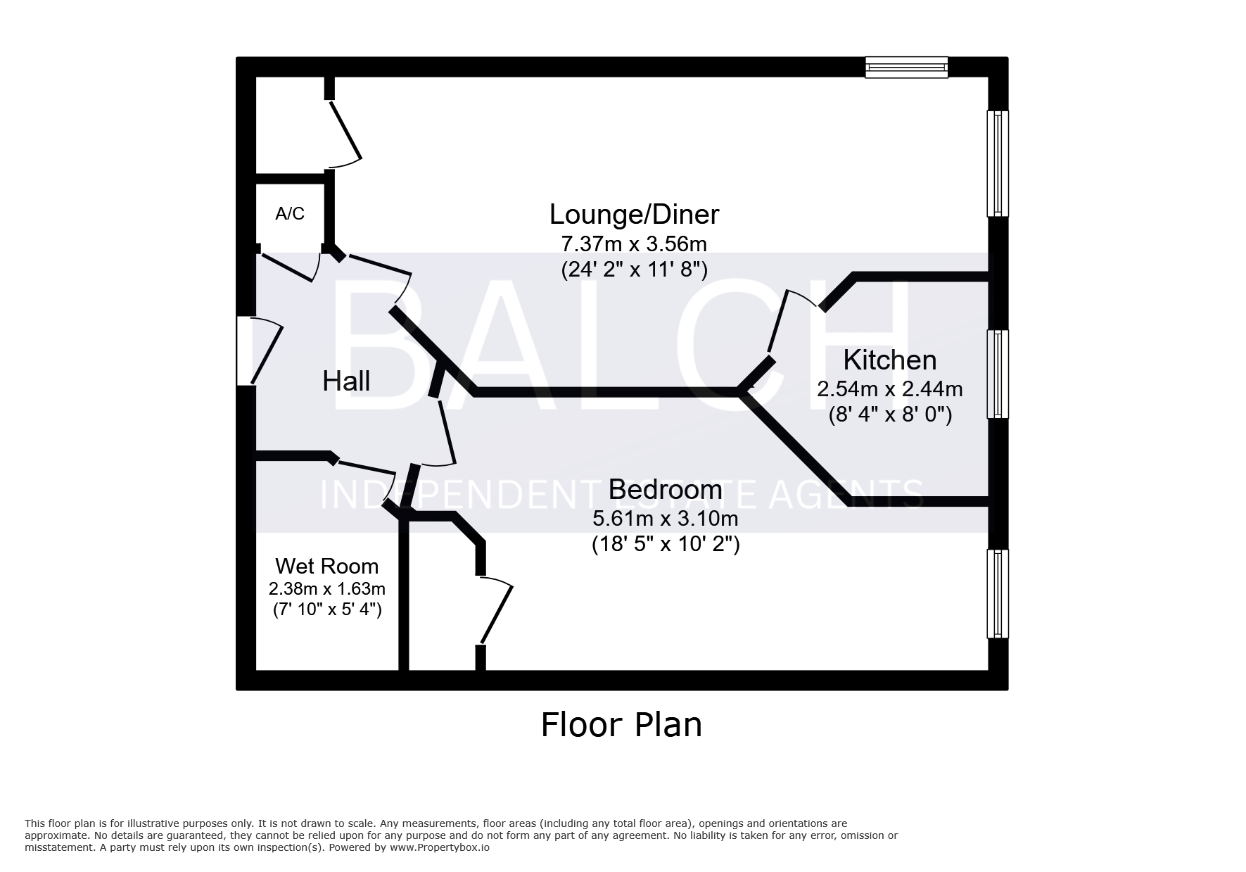 24' 2" MAX x 11' 8" (7.37m x 3.56m)