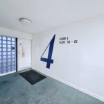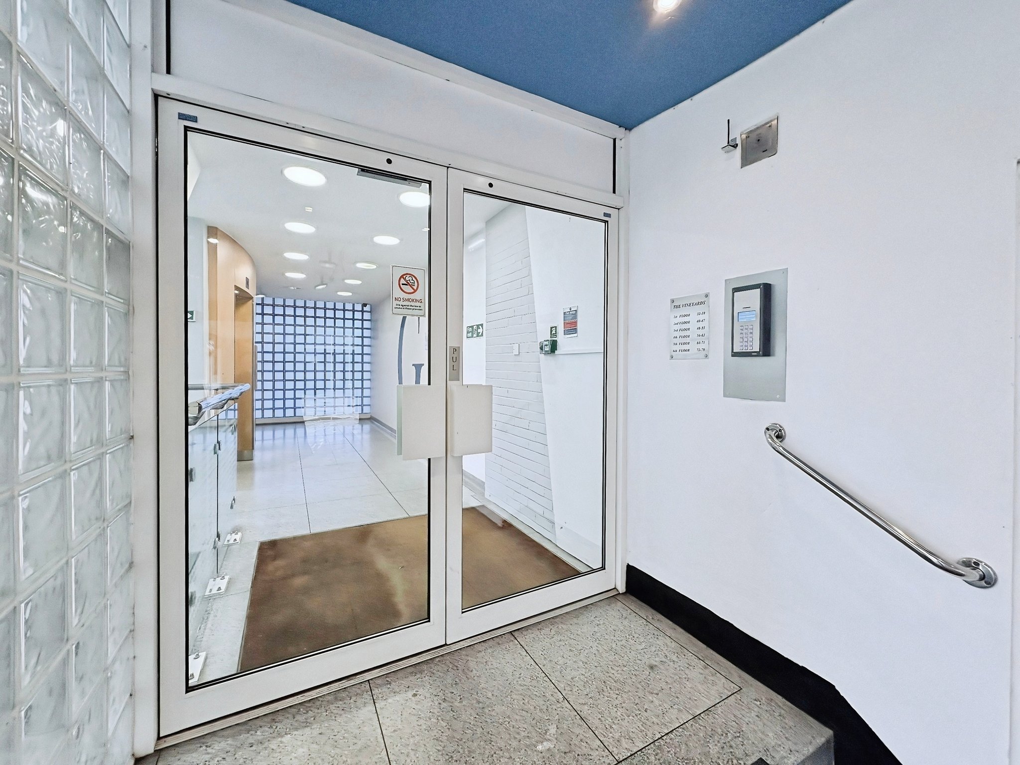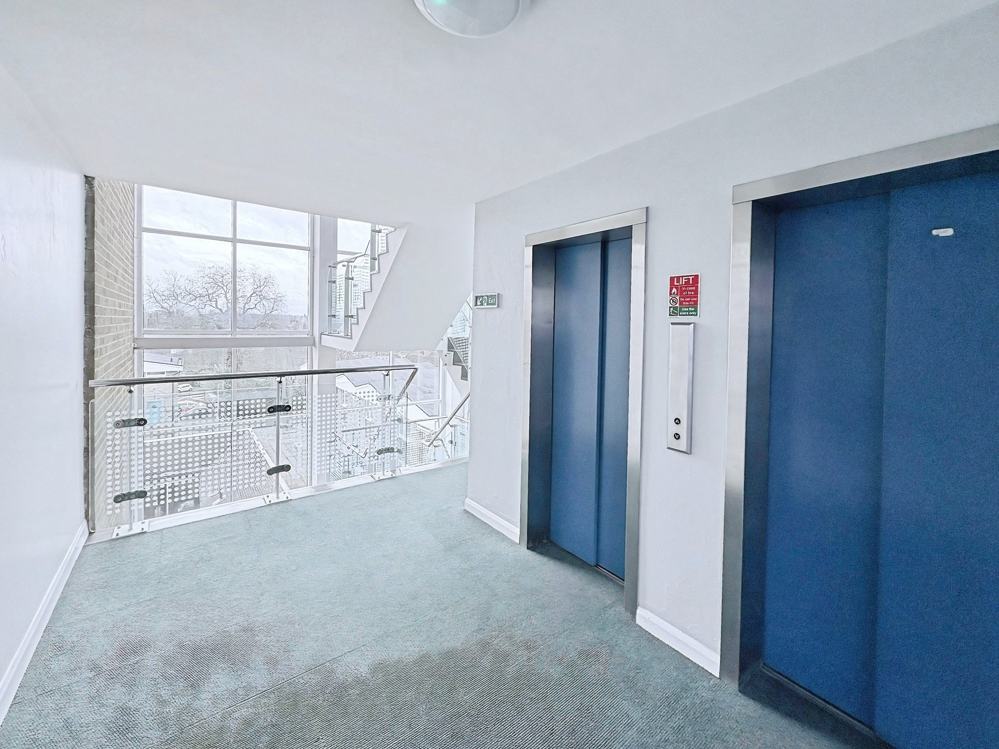 Security doors with electronic key pad, access to lifts and stairs.
